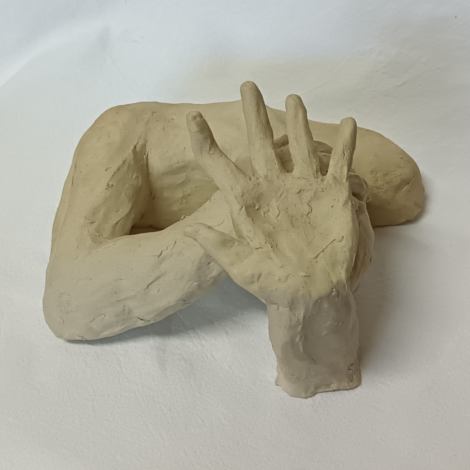 Rustic sculpture suggesting a figure anticipating a blow